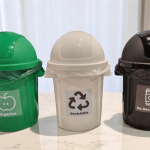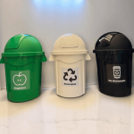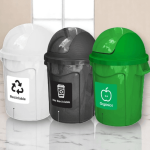 Combo de 3 Botes de Plástico en color Negro, Blanco y Verde, con tapadera Swing de 60 litros.